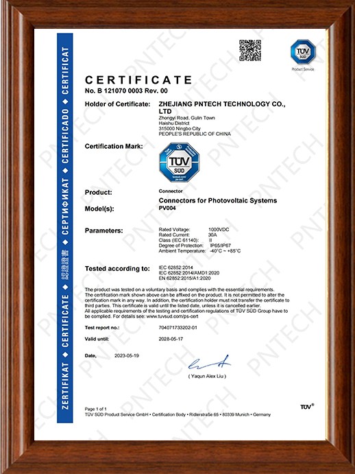 品恩泰克榮獲TüV南德授予的鋁合金光伏電纜認證證書